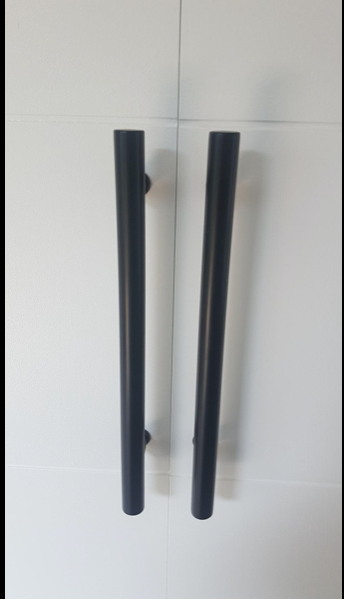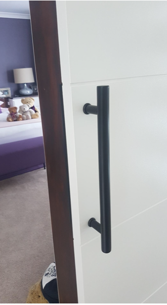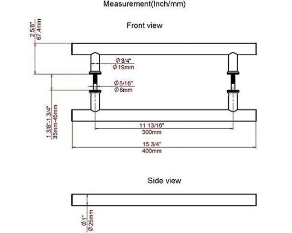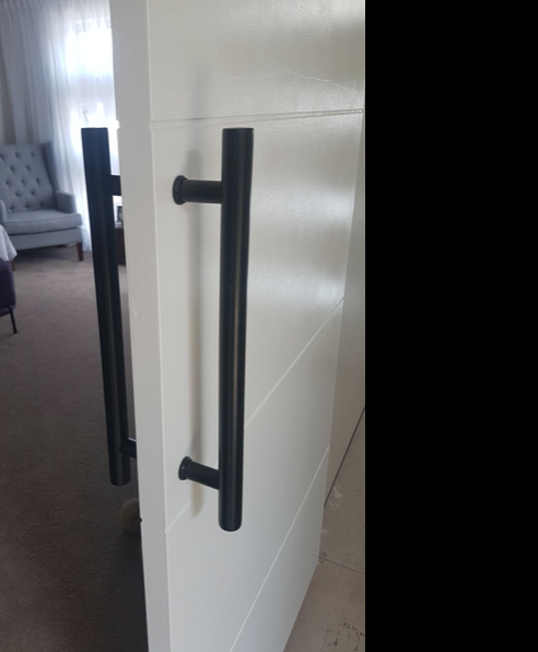 Grosor del panel de puerta: funciona en puertas de grosor de 4,4 a 1.4 in. (Si quieres utilizarlo para un panel de puerta más grueso, puedes comprar algunos tornillos más largos para que coincida con la puerta. ) El diámetro del tirador redondo es de 1.0 in, la longitud del juego de tiradores de granero es de 16.0 in. Asegúrate de que el tamaño coincide con tu puerta.