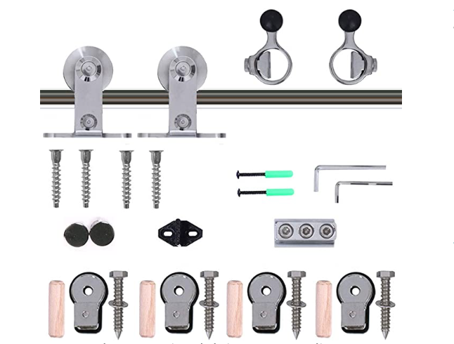 - Fácil de instalar: manual de instalación paso a paso para simplificar el proceso de instalación. Incluye 1 juego de rieles (empalmados), 2 colgadores, 2 topes para puerta, 1 guía de suelo, 1 instrucciones de instalación.