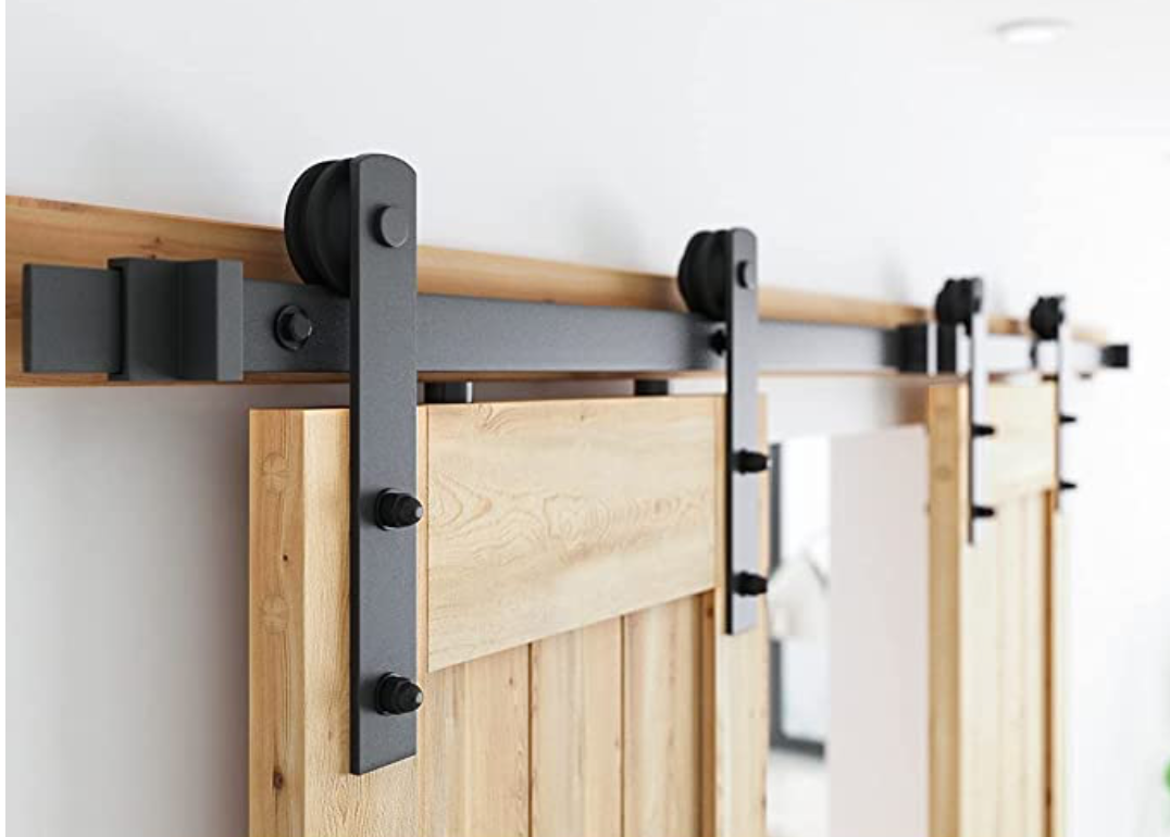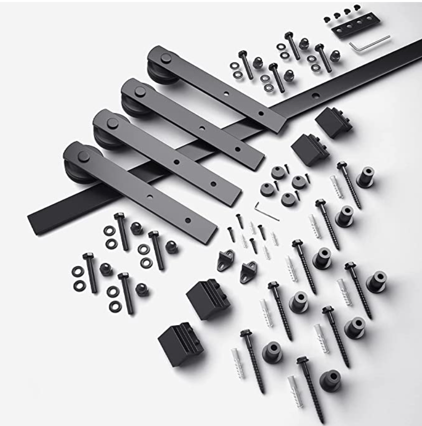 - Paquete incluye: 2 x 5.0 ft riel, 8 x; 4 x Rodillo de soporte de barra; 4 x tope para puerta; 4 x tapones; 2 x Guía de piso; 1 x conector barra; con agujero espaciador es 16" para American Stud de pared; puede ser instalado tanto en pared de madera y pared de hormigón. funciona para puertas dobles; todos los demás hardware necesario está incluido como se puede ver en las imágenes.