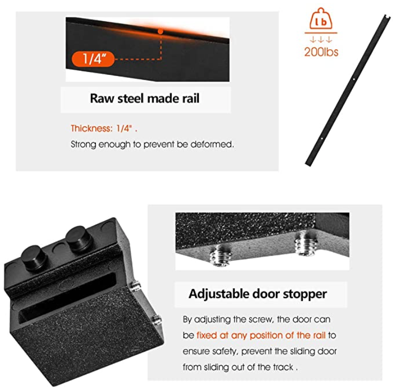 - Package included: A Barn Door Hardware Kit (2x 3.3FT Rails, 5x Rail Spacers, 2x Rollers, 2x Door Stops,2x End Caps,1x Floor Guide,1x Hex Key; All other necessary hardware is included as you see in the pictures. For 16 inch stud.) DOOR NOT INCLUDED.