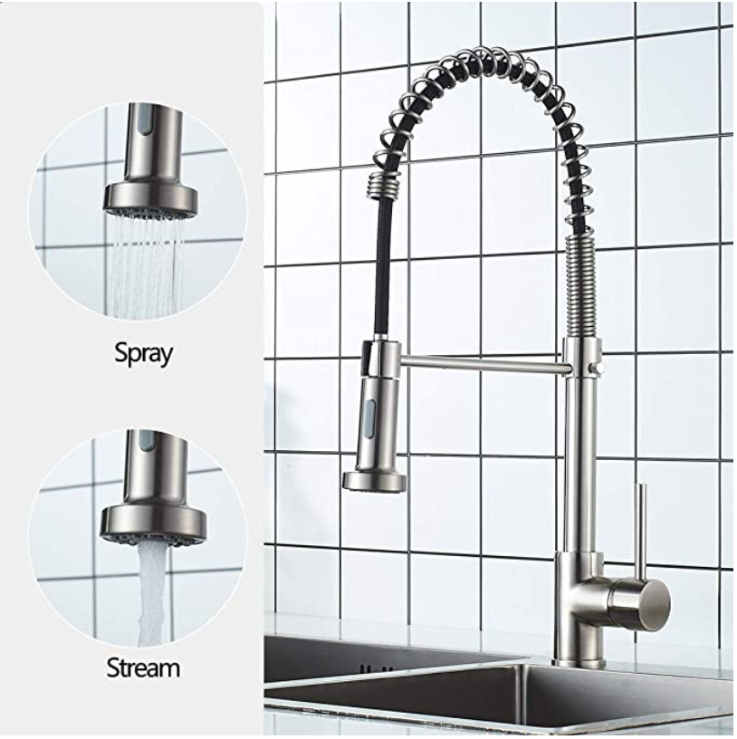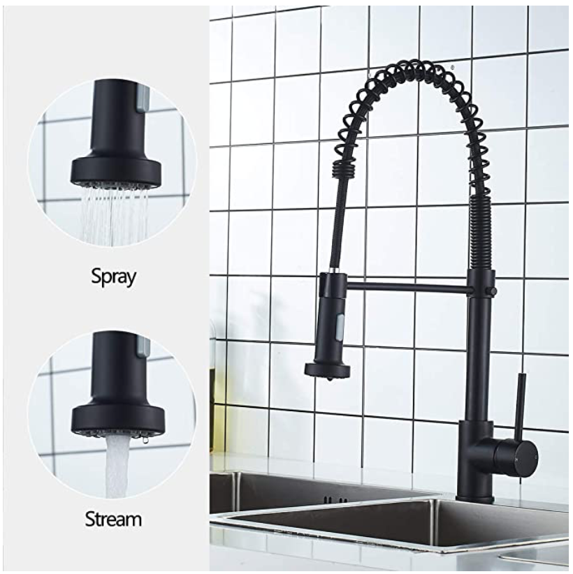 - El grifo de fregadero de cocina multifuncional cuenta con un modo de dos ajustes, te permite cambiar fácilmente de flujo aireado sin salpicaduras (para rellenar) a un potente spray de pre-enjuague (para enjuague fuerte) con solo pulsar un interruptor.