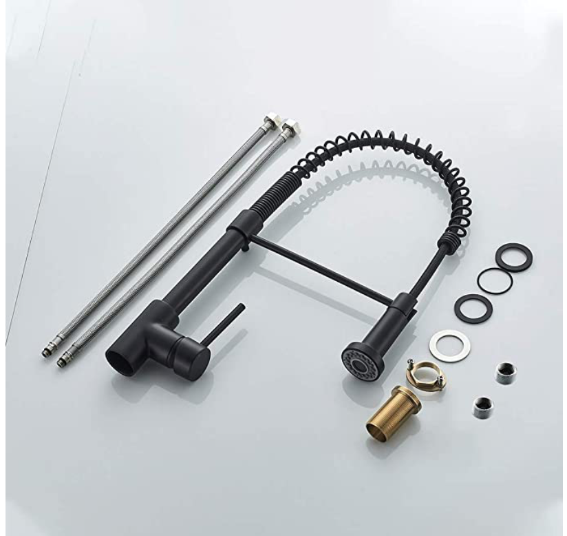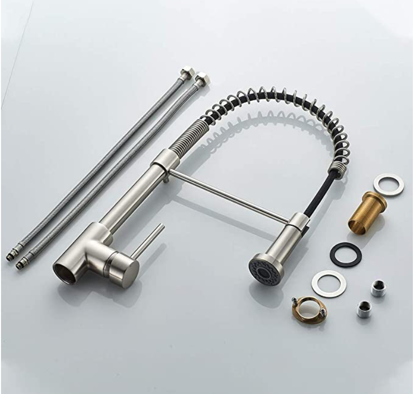 - Herramientas de montaje: grifo de cocina, 2 líneas de suministro de agua (caliente y frío), rosca de compresión hembra de 0.5 in con adaptadores de 0.4 in, cinta de teflón, arandela de goma, arandela de montaje, tuerca de tornillo de apriete, instrucciones de instalación.