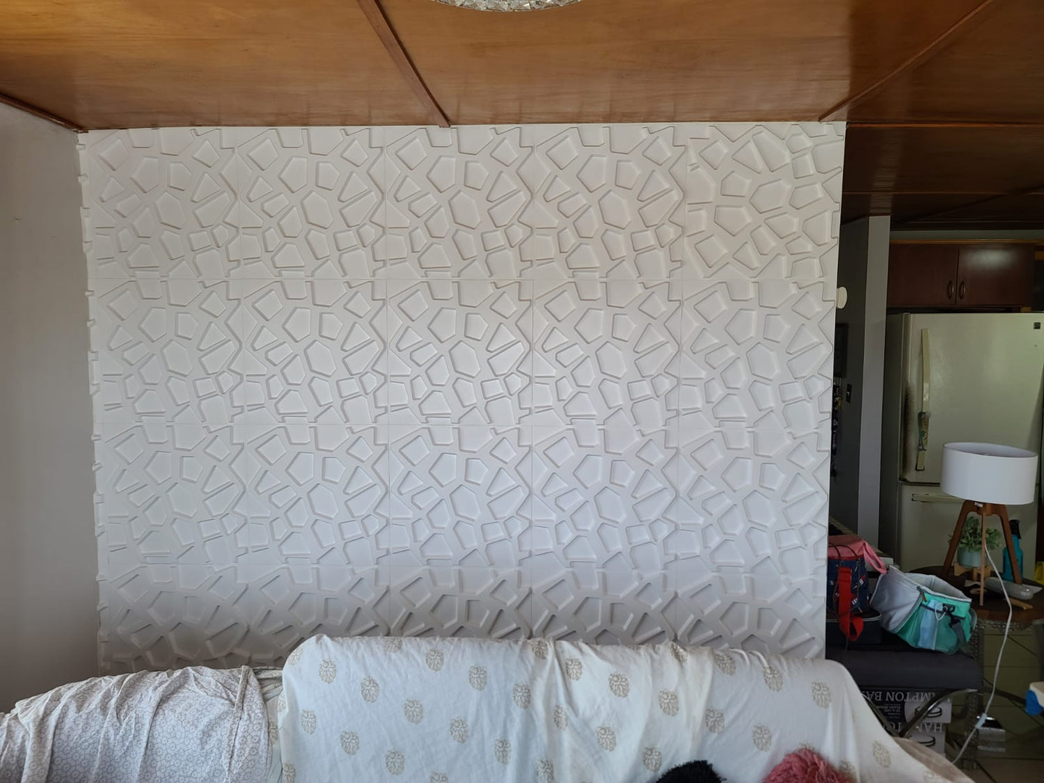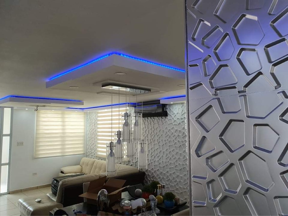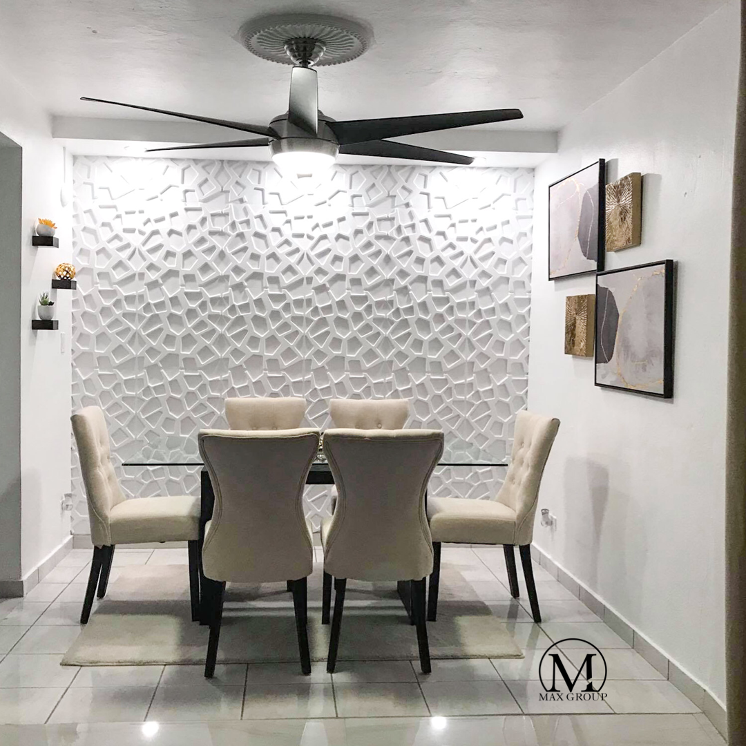 Cada caja incluye 12 piezas. Pared en material PVC; cada caja es equivalente a 32 pies cuadrados.