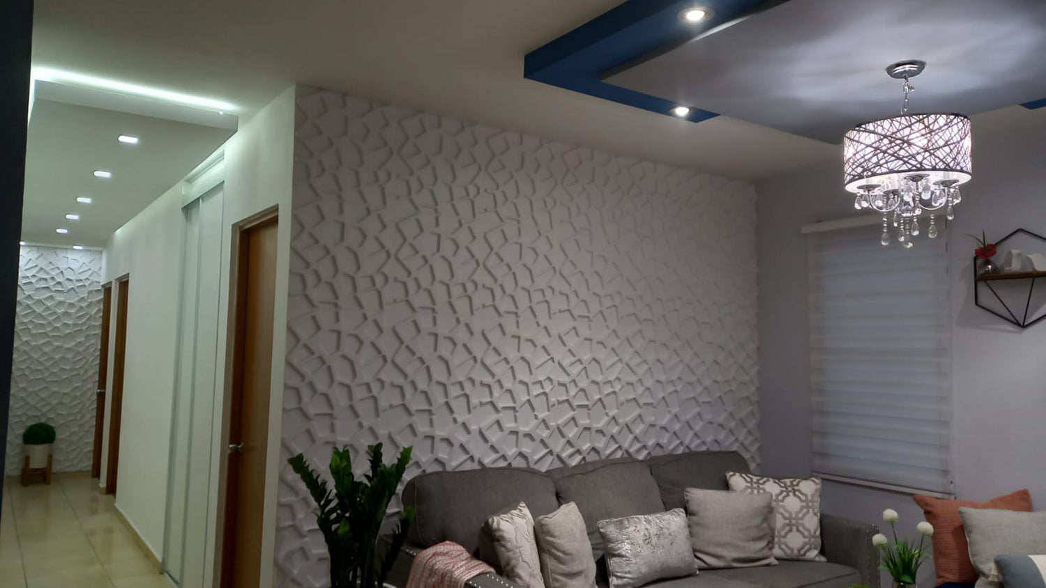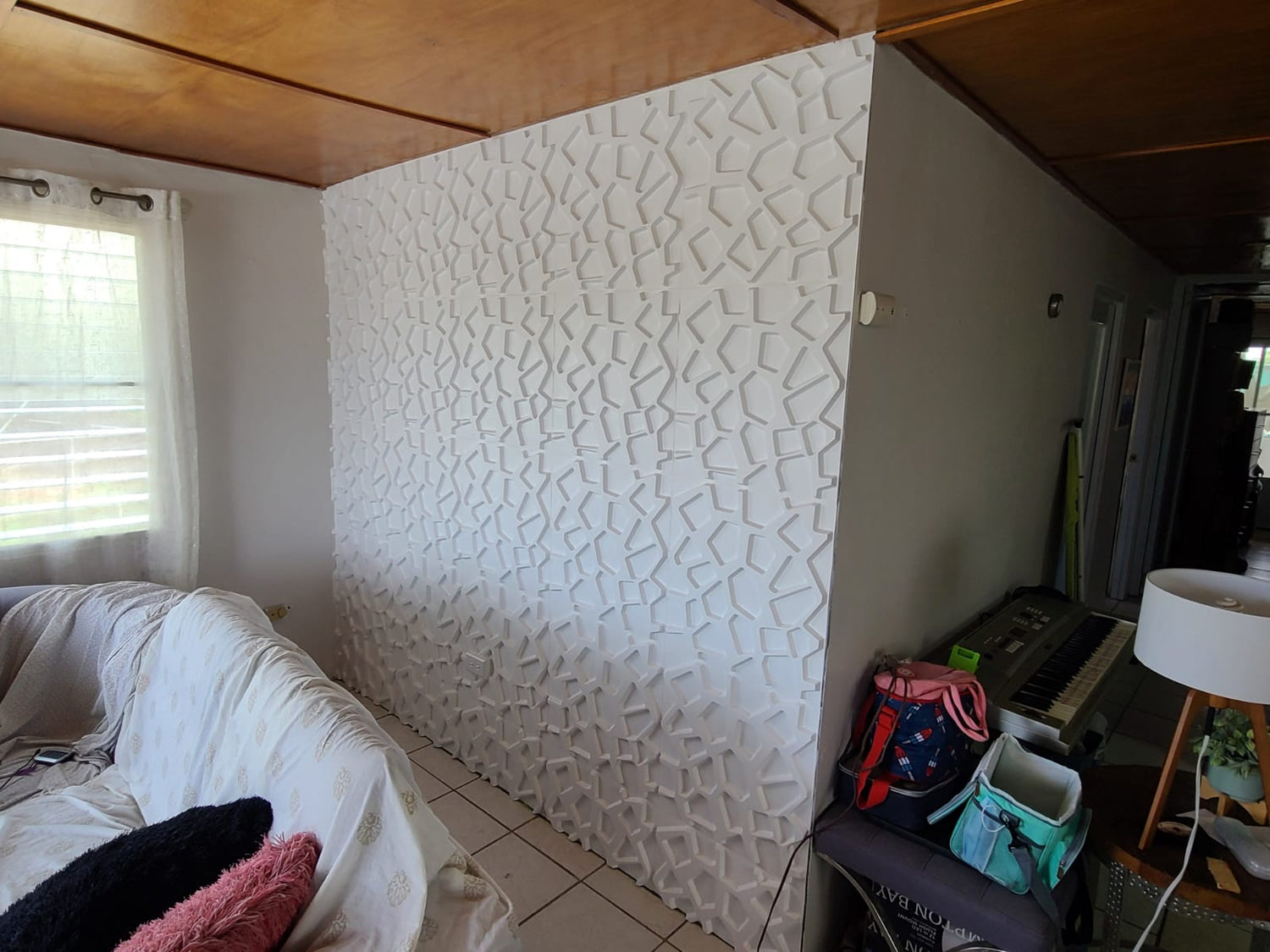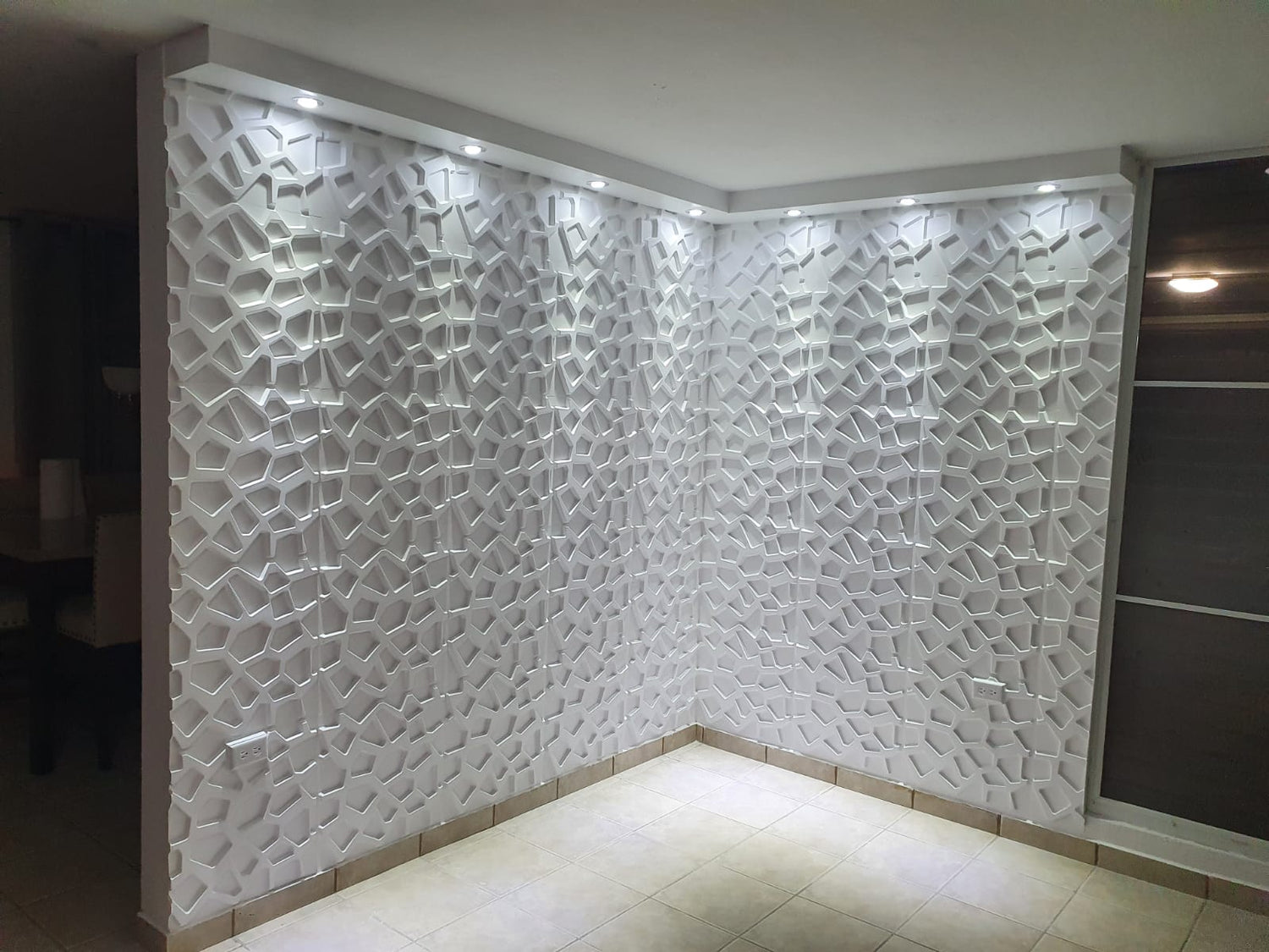 Cada caja incluye 12 piezas. Pared en material PVC; cada caja es equivalente a 32 pies cuadrados.