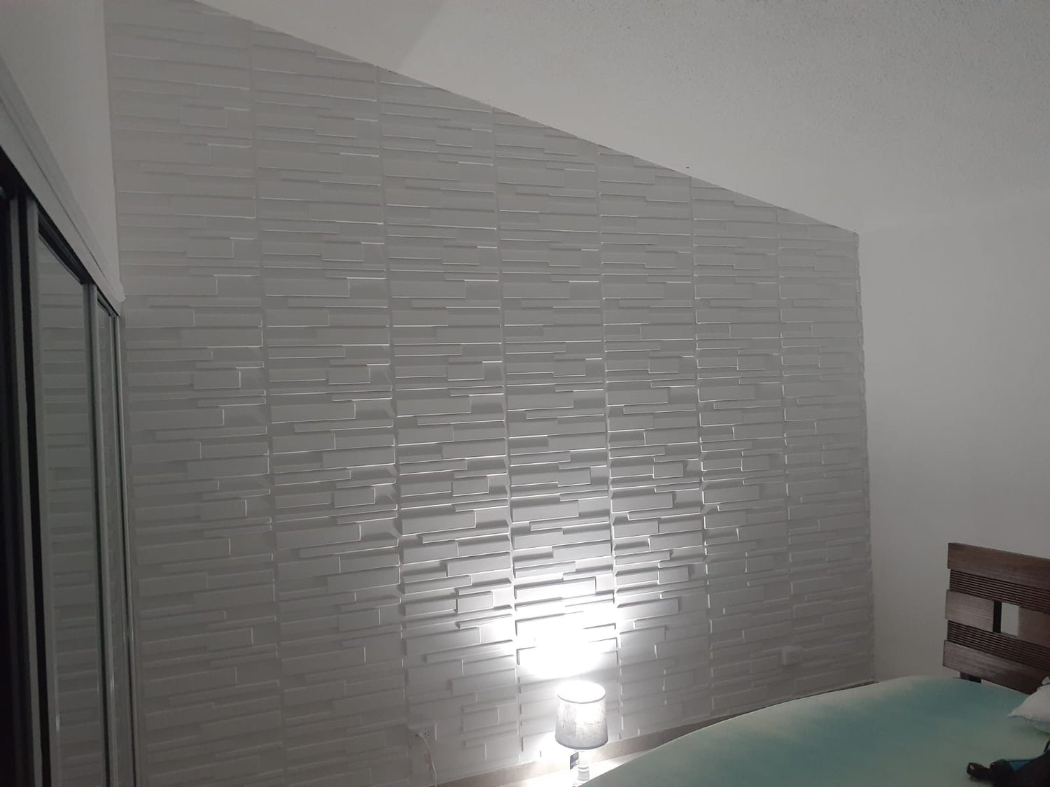 Cada caja incluye 12 piezas. Pared en material PVC; cada caja es equivalente a 32 pies cuadrados.